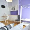 La camera si trova presso la struttura Stop & Sleep Udine Fronte Ospedale in Via Forni di Sotto n.56, 33100 Udine. Questa luminosa stanza con angolo cottura con due letti separati in midollino naturale intrecciato, offerta anche come singola, gode di una atmosfera minimale e rilassante, il colore dominante delle pareti e dei soffitti, viola metile, dinamico ed accattivante, abbinato ad un arredamento ricercato e di design crea una relazione molto raffinata e profondamente armonica.